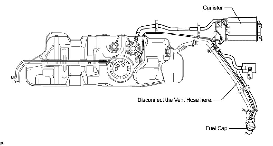 HINT: Disconnect the hose between the canister and the fuel tank from the canister. Block the canister side and conduct an inspection. In this way, the fuel tank can be excluded as an area suspected of causing fuel leaks.