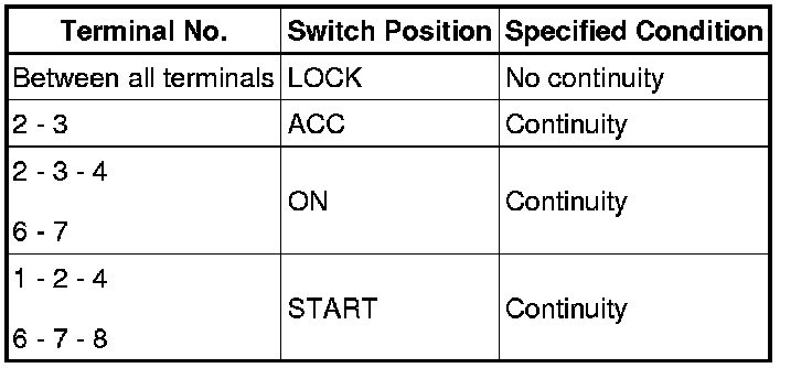 2UZ-FE STARTING: IGNITION SWITCH: INSPECTION