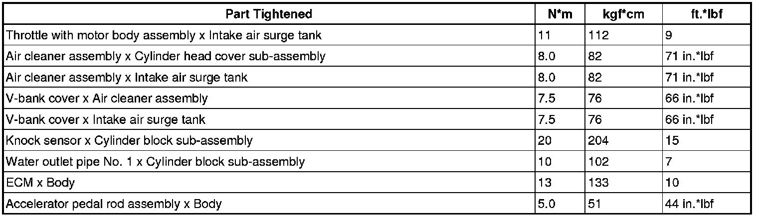 SERVICE SPECIFICATIONS: 1GR-FE ENGINE CONTROL SYSTEM: TORQUE SPECIFICATIONS