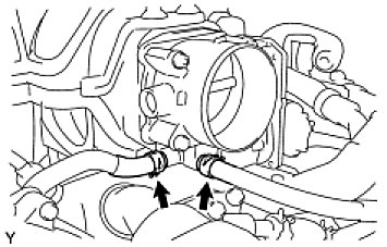 (i) Connect the 2 water by-pass hoses to the throttle body.