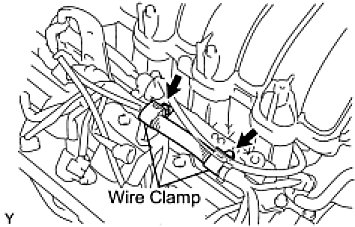 (j) Connect the 2 wire clamps to the wire clamp bracket on the RH delivery pipe.