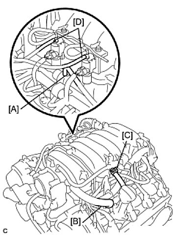 (d) Connect the 2 vacuum hoses [D] to the VSV for the air injection system.