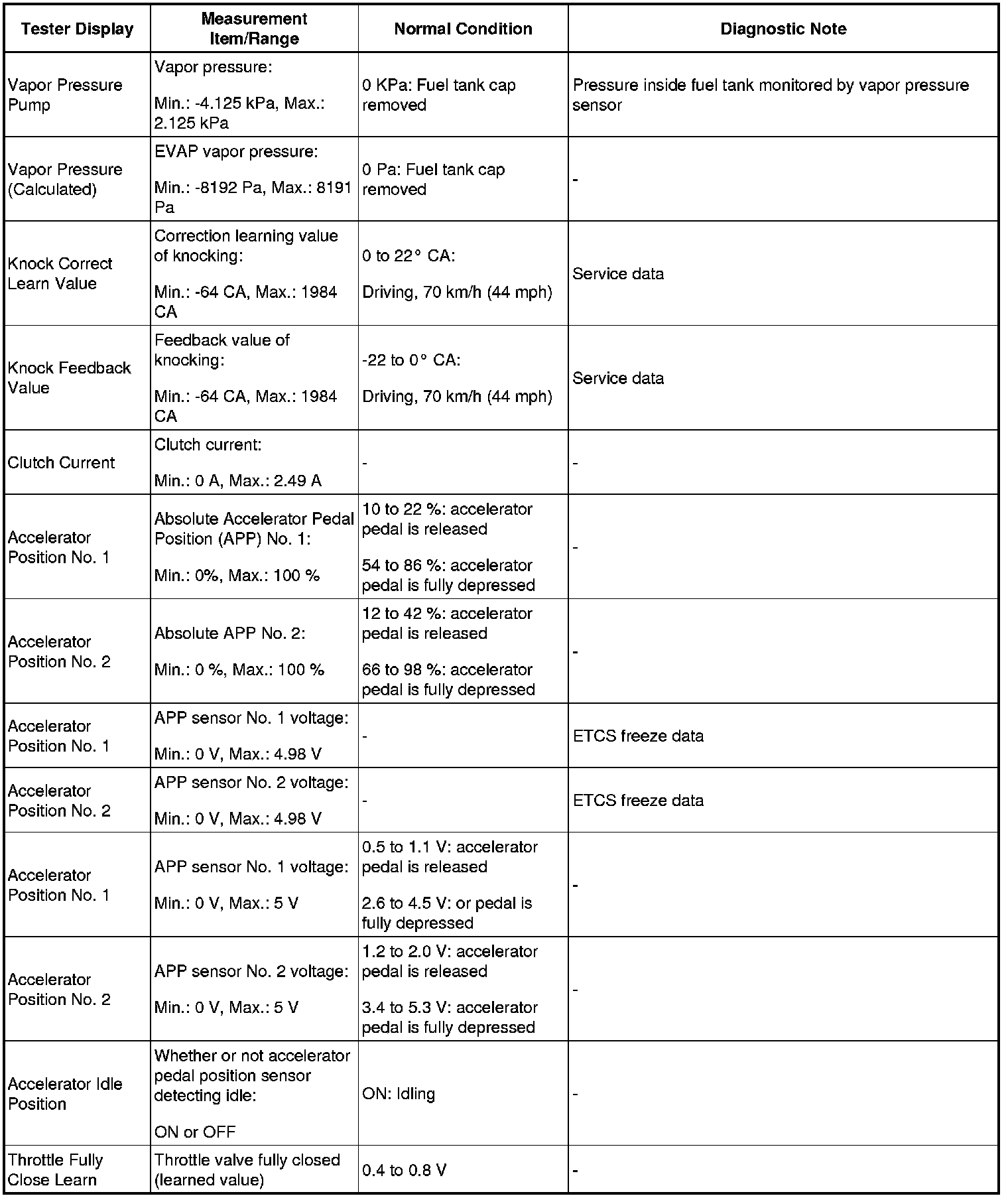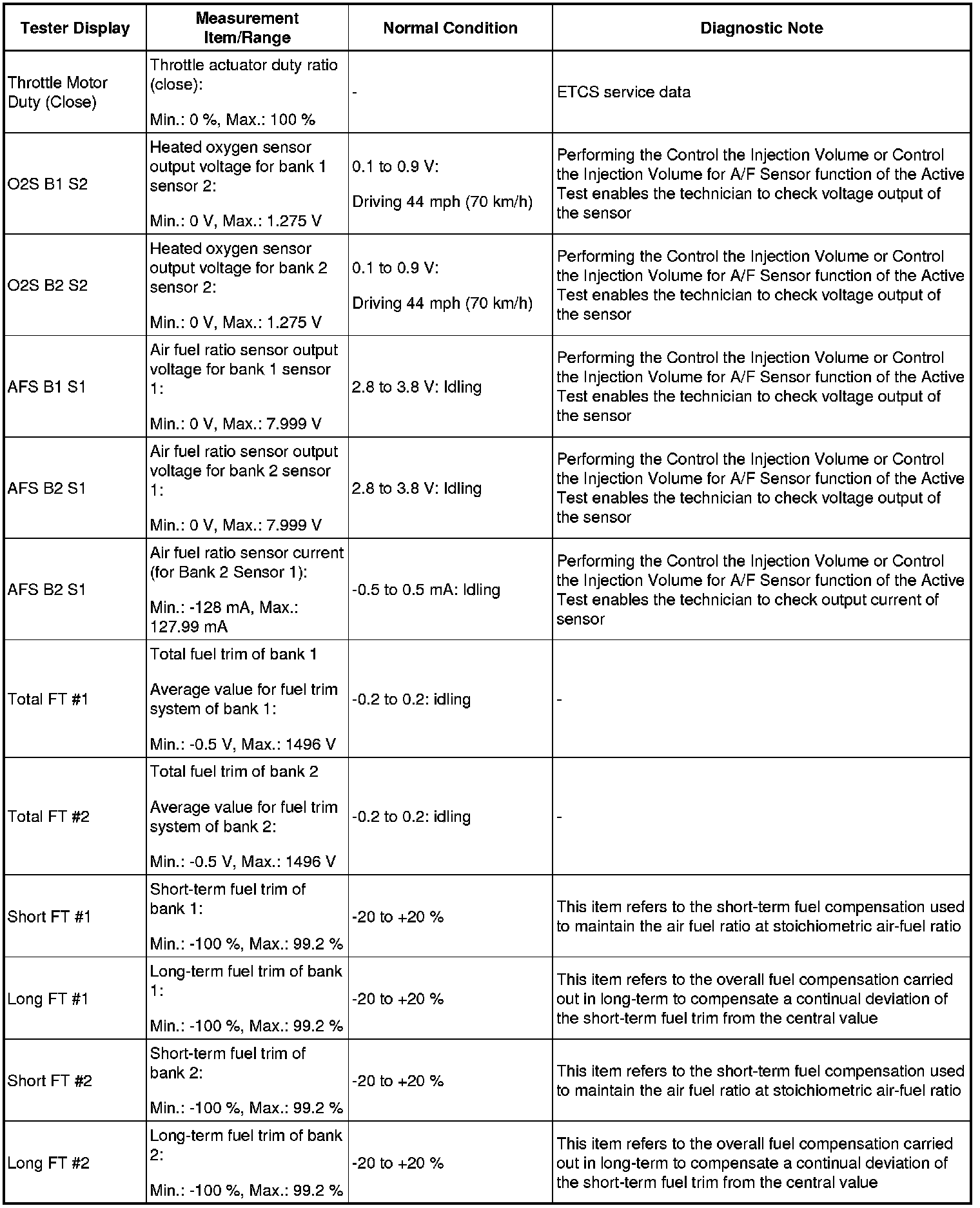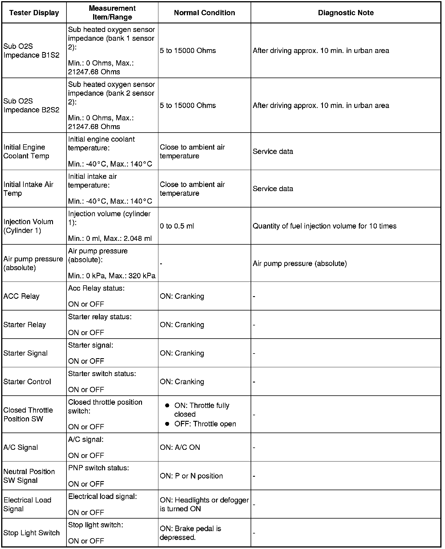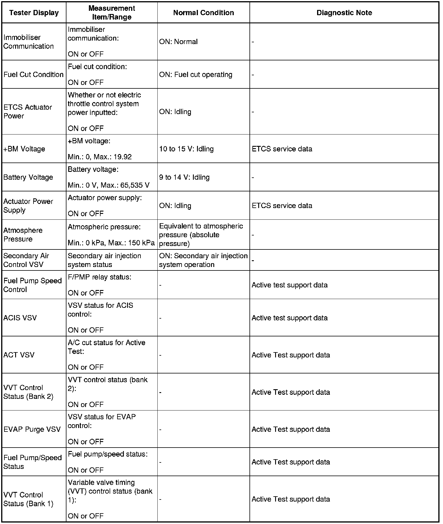 HINT: Using the Techstream's Data List allows switch, sensor, actuator and other item values to be read without removing any parts. Reading the Data List early in troubleshooting is one way to save time.