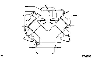 HINT: Separation of the engine oil dipstick, oil filler cap, PCV hose, etc. may cause an engine failure or engine malfunctions. Disconnection, looseness or cracks in the parts of the air induction system between the throttle body and cylinder head will allow air suction and cause an engine failure or engine malfunctions.