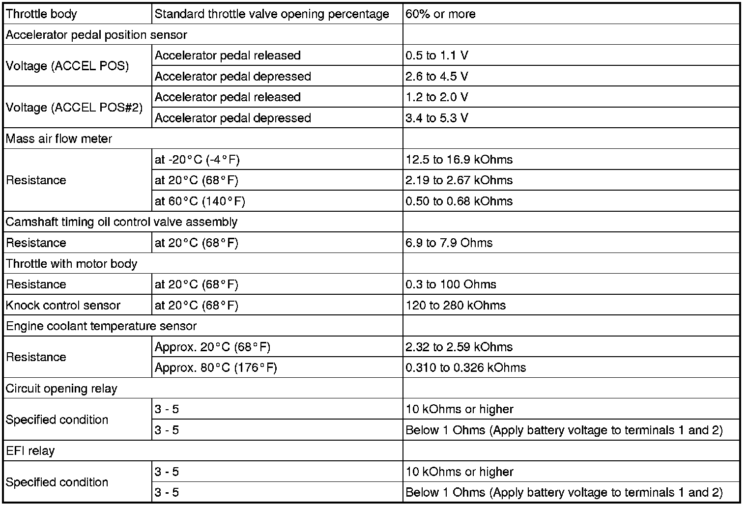 SERVICE SPECIFICATIONS: 2UZ-FE ENGINE CONTROL SYSTEM: SERVICE DATA
