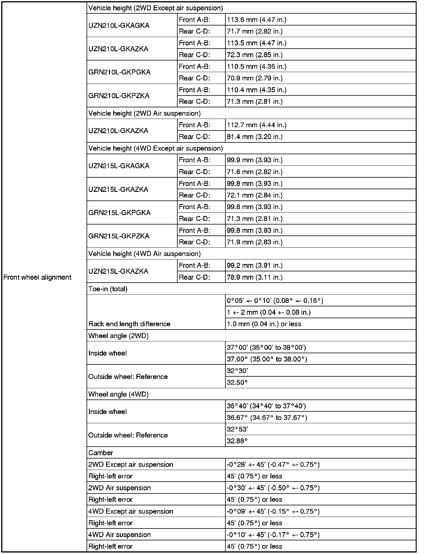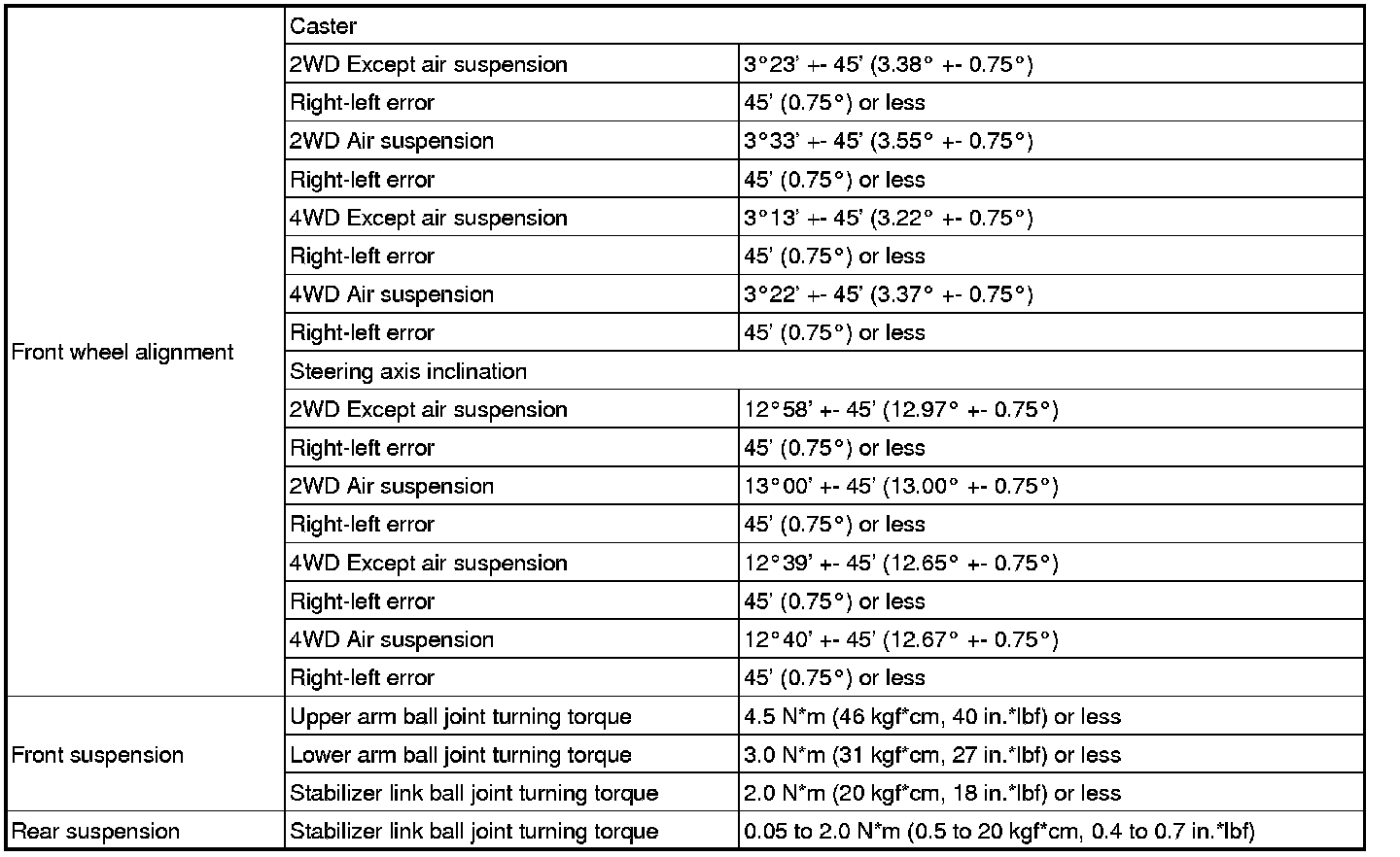SERVICE SPECIFICATIONS: SUSPENSION: SERVICE DATA