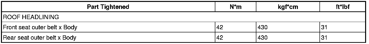 SERVICE SPECIFICATIONS: INTERIOR: TORQUE SPECIFICATIONS