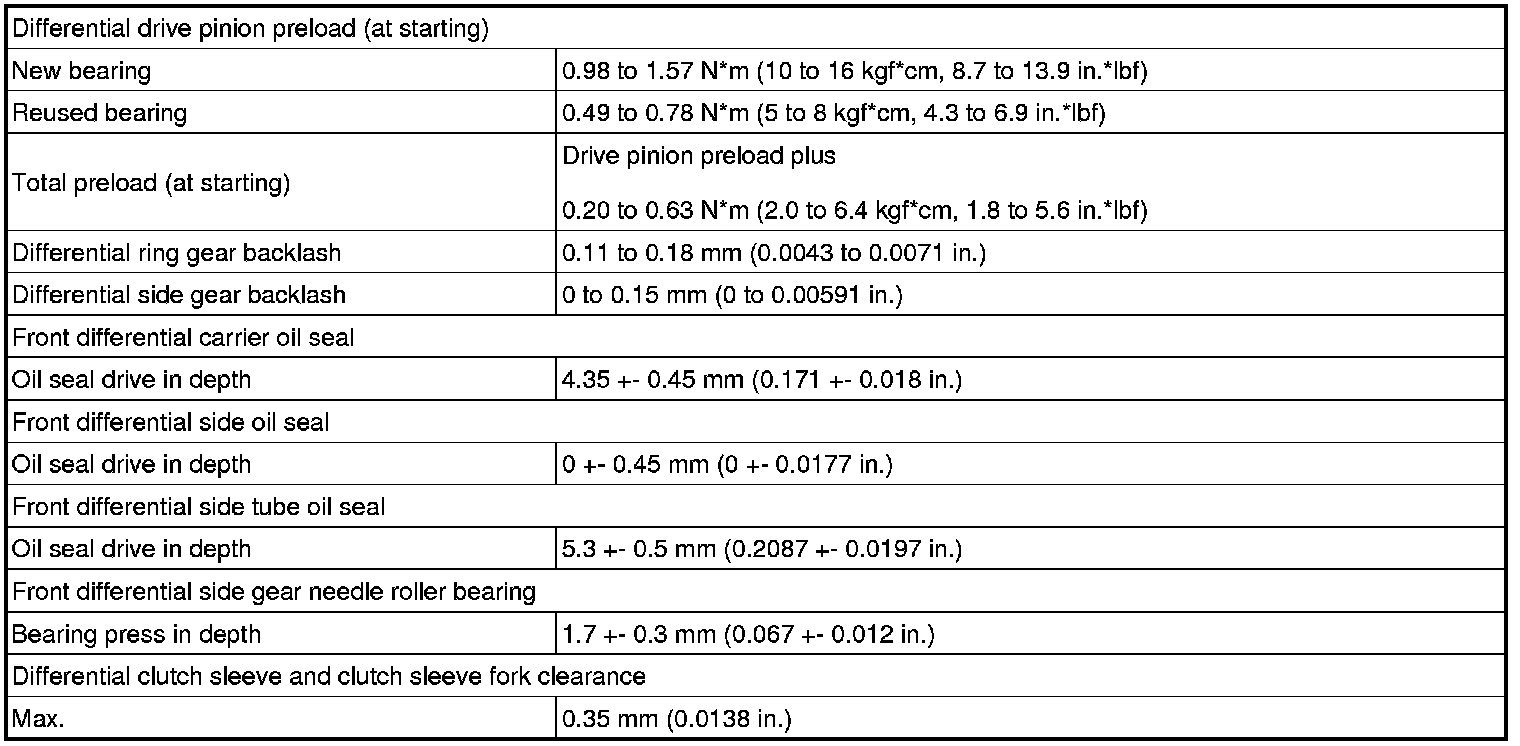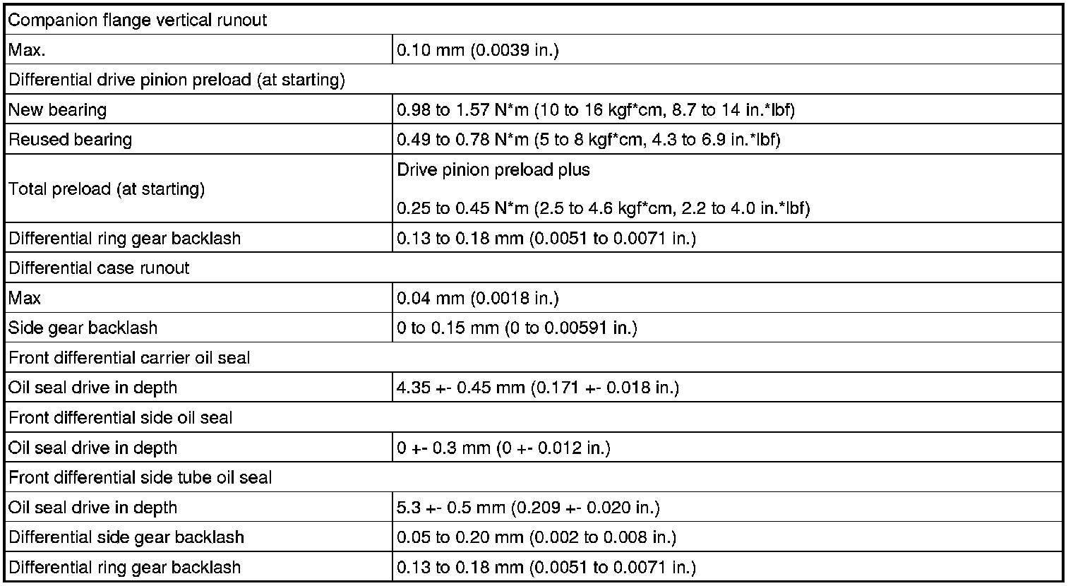 SERVICE SPECIFICATIONS: DIFFERENTIAL: SERVICE DATA