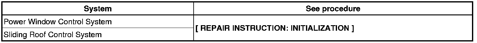 NOTICE: When disconnecting the negative (-) battery terminal, initialize the following system(s) after the terminal is reconnected.