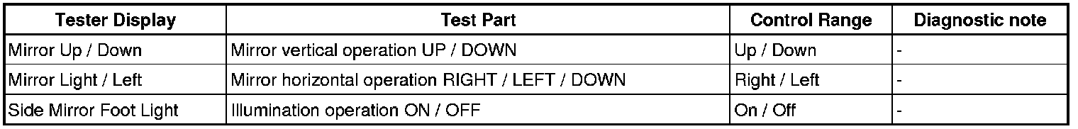 MIRROR: POWER MIRROR CONTROL SYSTEM (w/ Memory): DATA LIST / ACTIVE TEST
