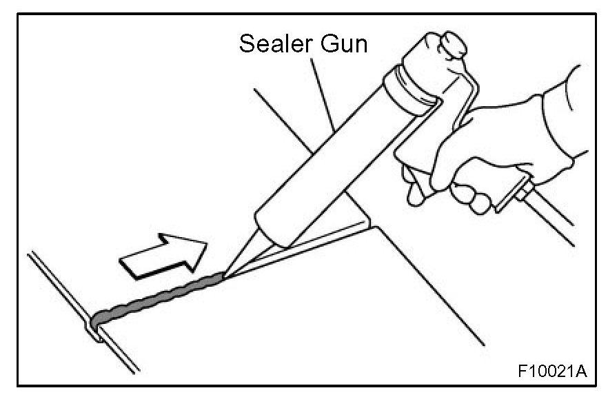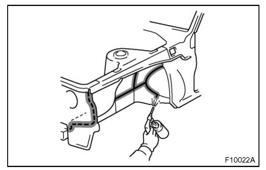 1. For water-proofing and anti-corrosion measures, always apply the body sealer to the body panel seams and hems of the doors, hoods, etc.