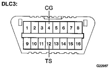 (2) Using SST, connect and terminals TS and CG of the DLC3.