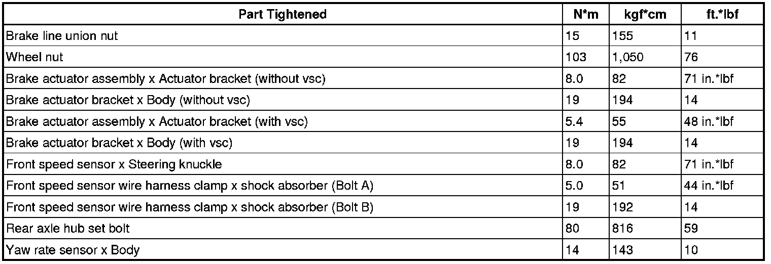 SERVICE SPECIFICATIONS: BRAKE CONTROL: TORQUE SPECIFICATIONS