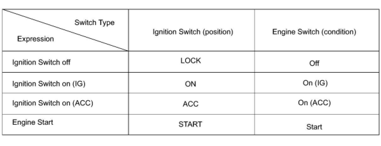 1. EXPRESSIONS OF IGNITION SWITCH