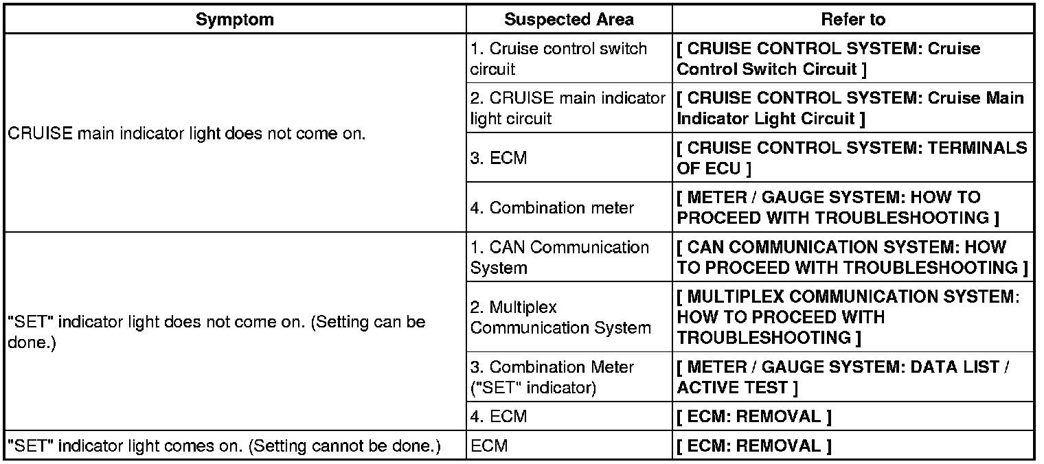 CRUISE CONTROL SYSTEM: PROBLEM SYMPTOMS TABLE