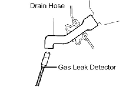(d) Bring the gas leak detector close to the drain hose with the detector's power off.