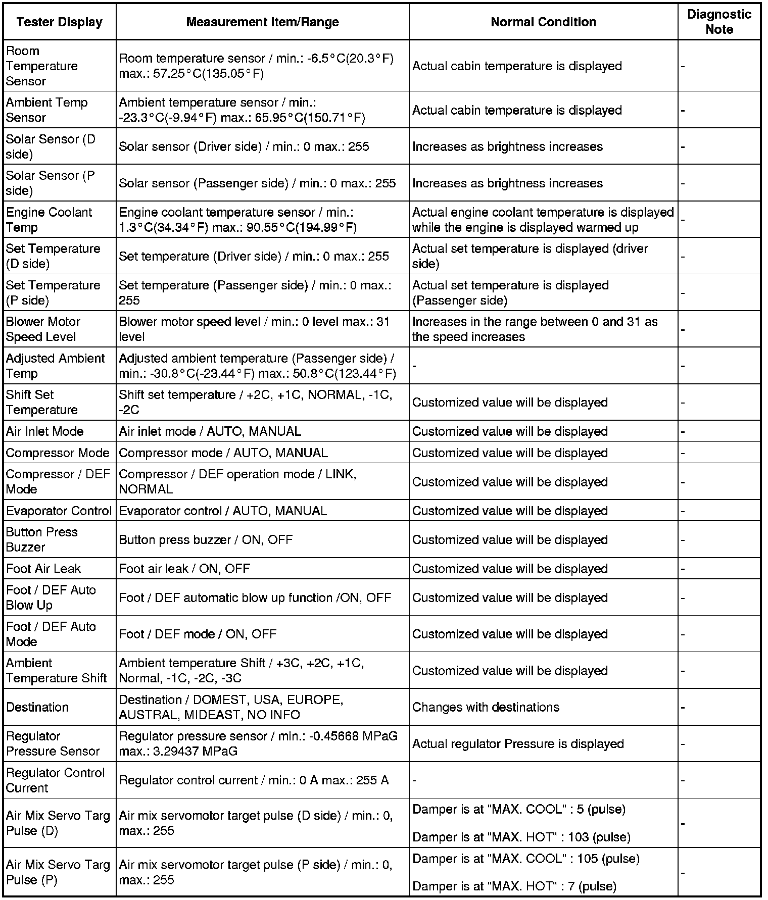AIR CONDITIONING: AIR CONDITIONING SYSTEM: DATA LIST / ACTIVE TEST
