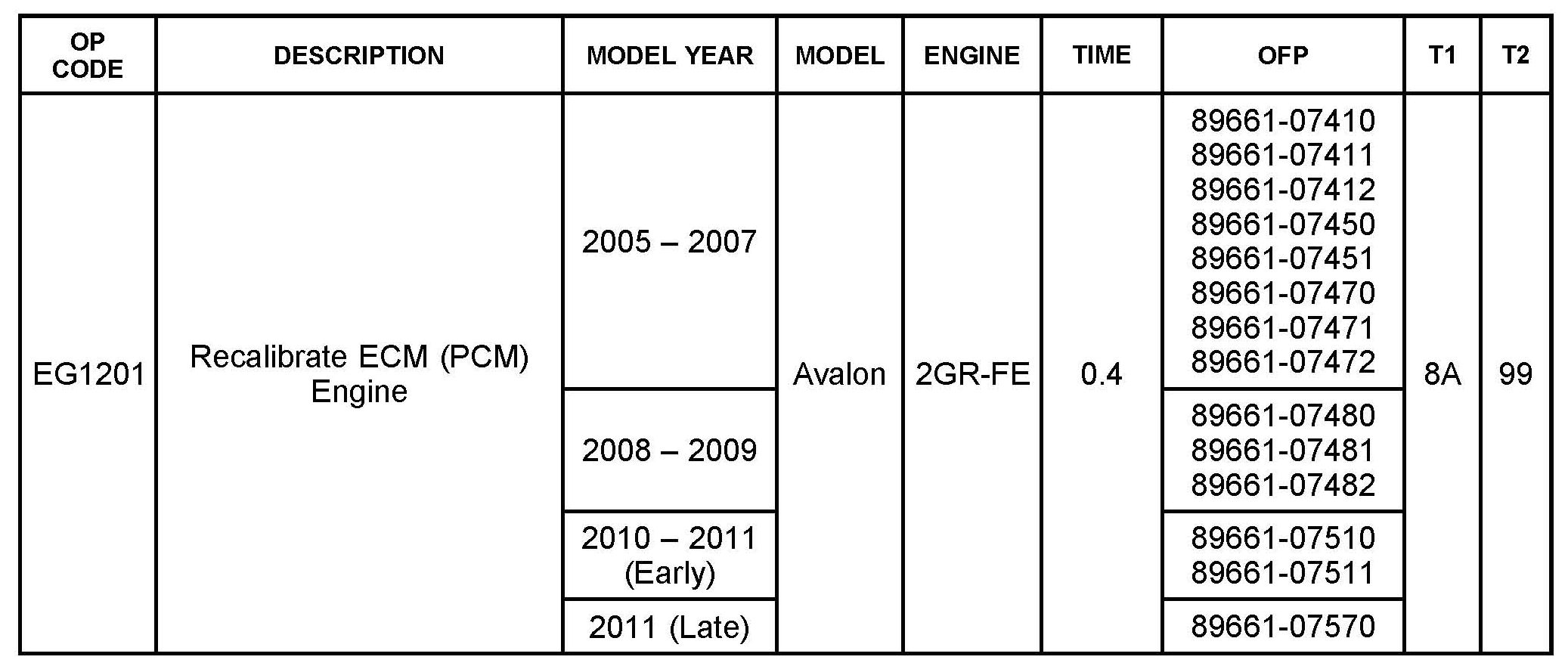 Some 2009 - 2011 model year Avalon vehicles equipped with 2GR-FE engines may exhibit a MIL "ON" condition with Diagnostic Trouble Code (DTC) P0456 - Evaporative Emission Control System Leak Detected (Very Small Leak) - when no leak is present. The Engine Control Module/ECM (SAE term: Powertrain Control Module/PCM) logic has been modified to reduce the possibility of this condition occurring. Use the following repair procedure to address this condition.
