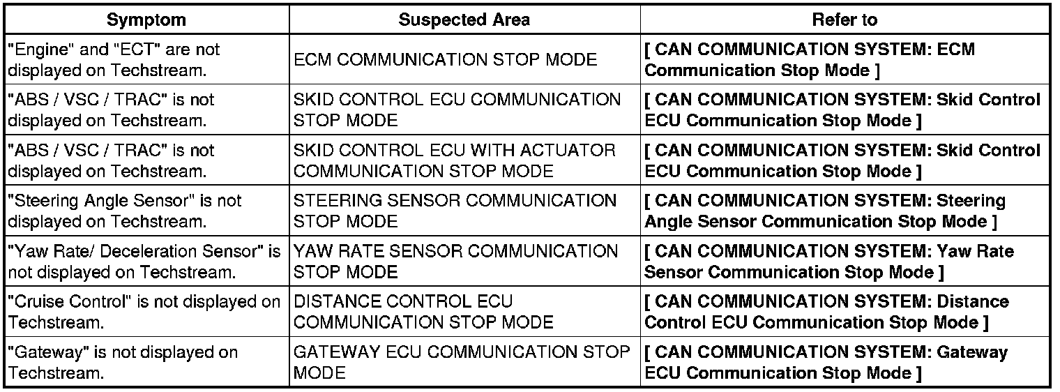 CAN COMMUNICATION: CAN COMMUNICATION SYSTEM: PROBLEM SYMPTOMS TABLE