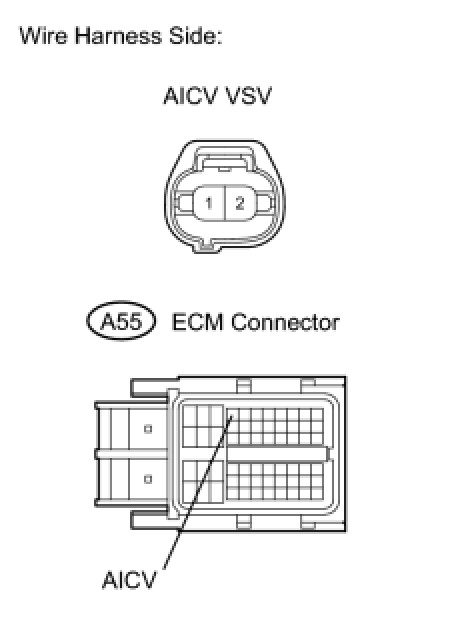 (a) Check the wire harness between the VSV for AICV connector and the ECM connector.