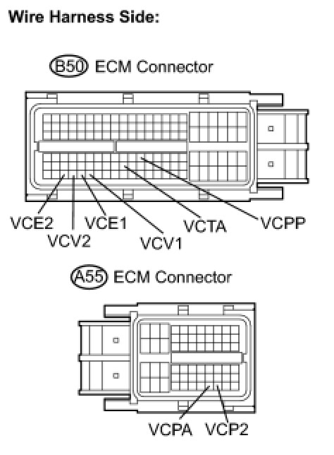 (d) Disconnect the VVT sensor for exhaust camshaft bank 1 connector.