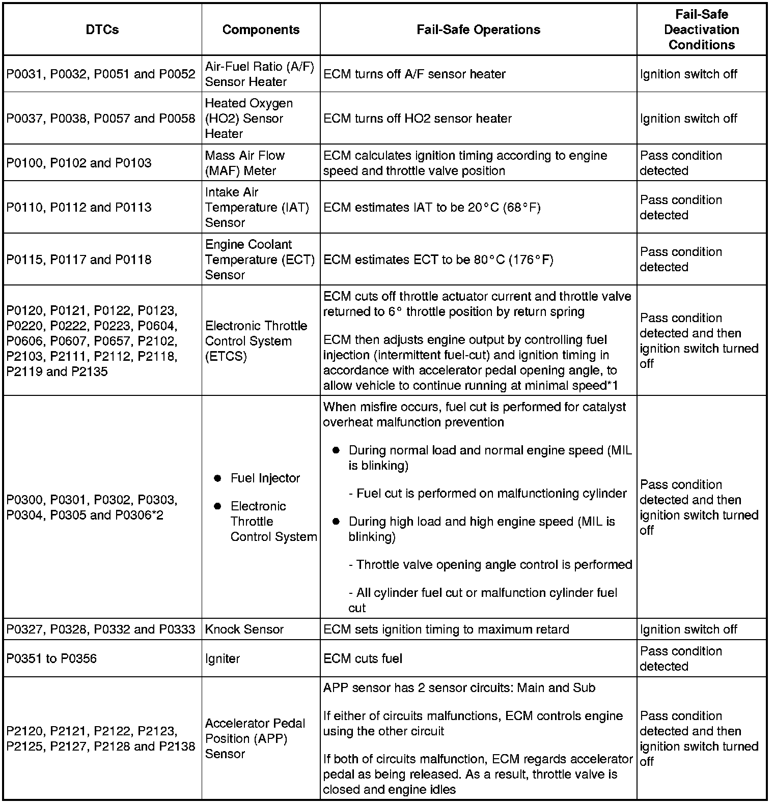 *2: Misfire related fail-safe operations occur when catalyst overheat malfunctions occur.