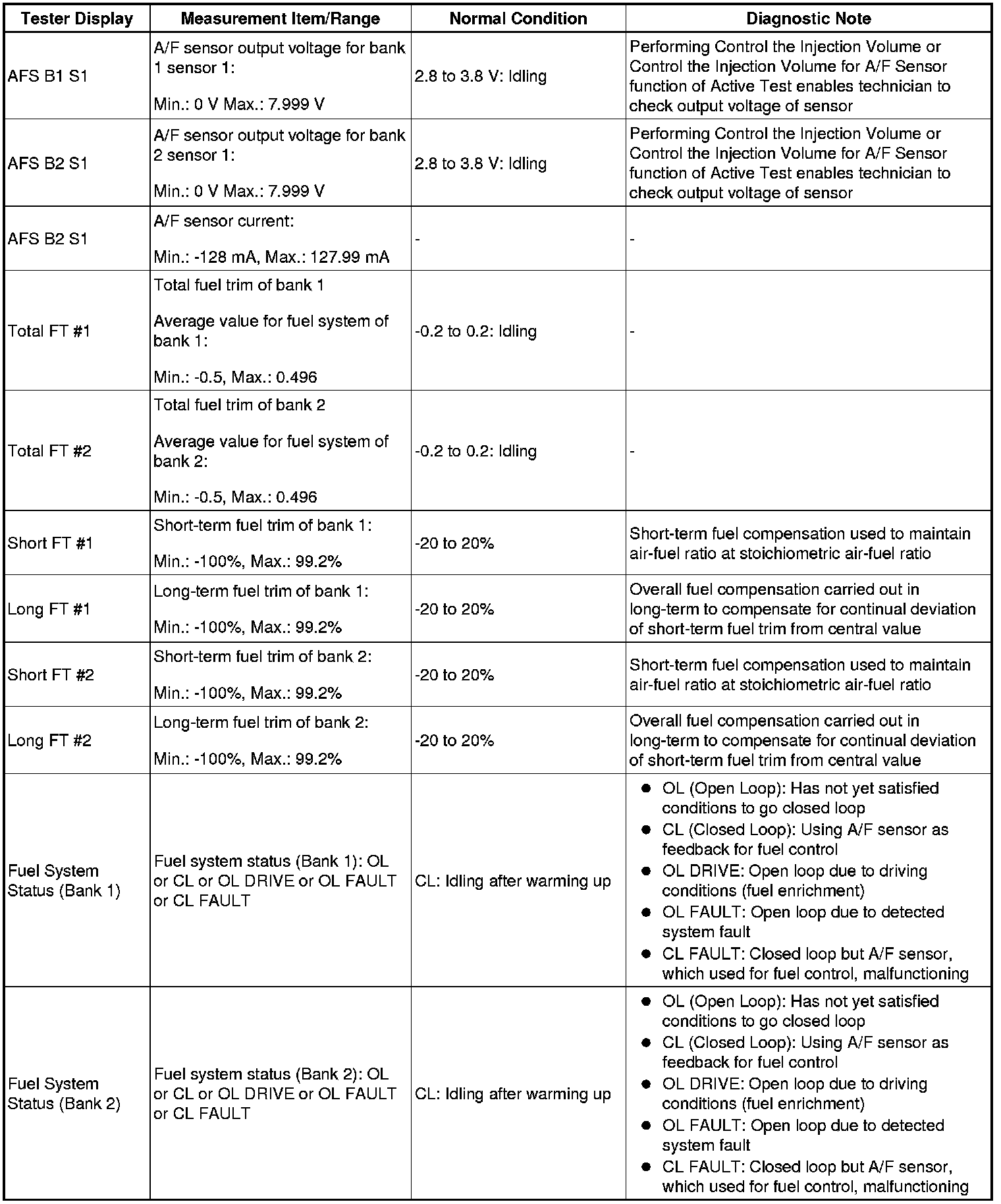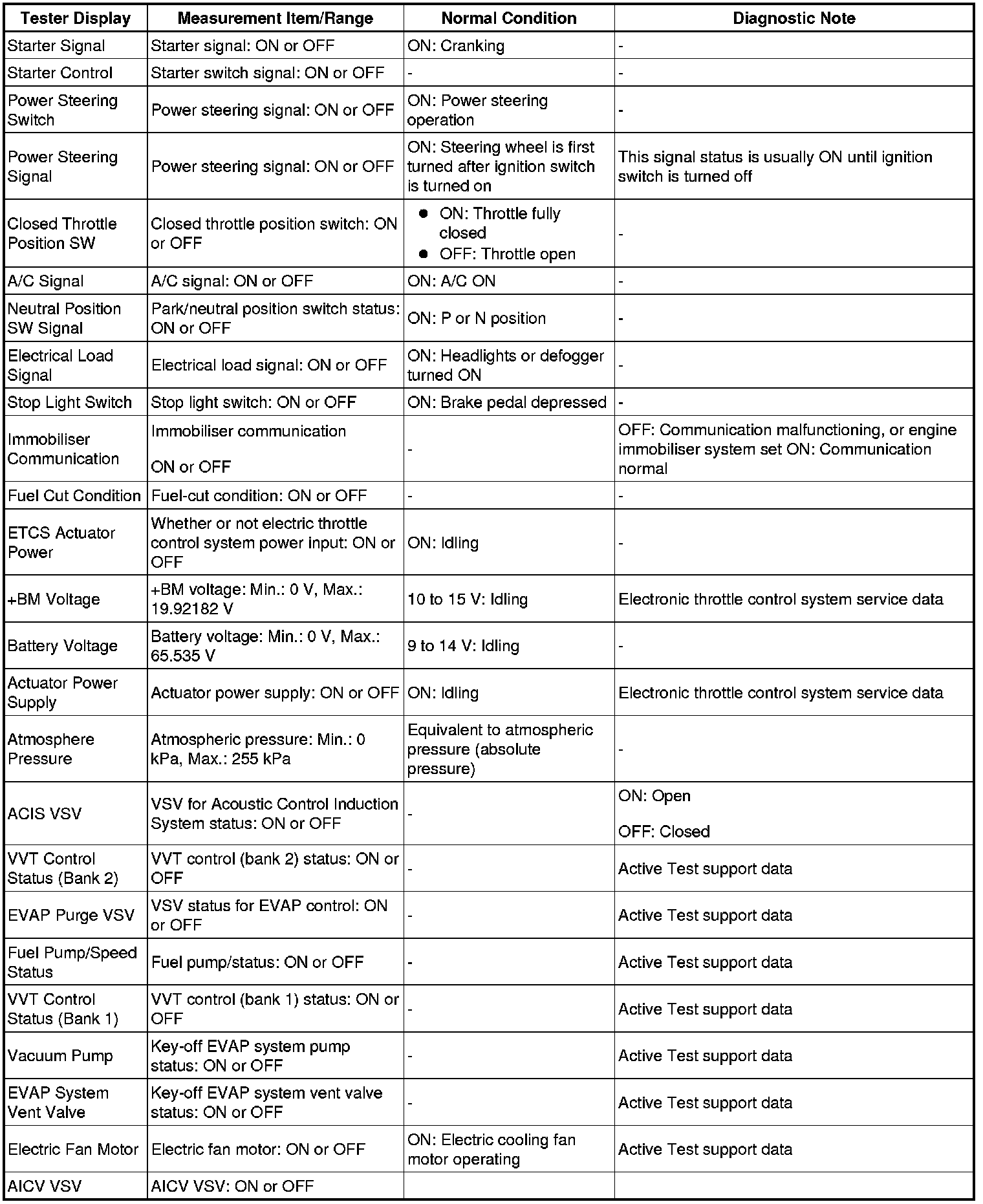 HINT: By reading the Data List displayed on Techstream, you can check values, including those of the switches, sensors, and actuators, without removing any parts. Reading the Data List as the first step in troubleshooting is one method of shortening diagnostic time.