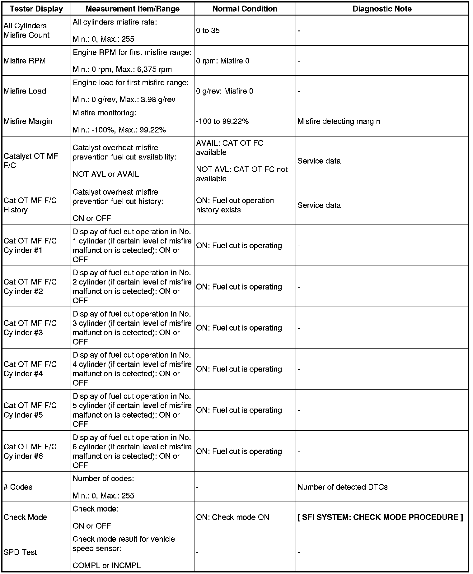 - *1: If the display of the Data List's Catalyst OT MF F/C item is Not Avl, perform this Active Test with the vehicle stopped and the engine idling.