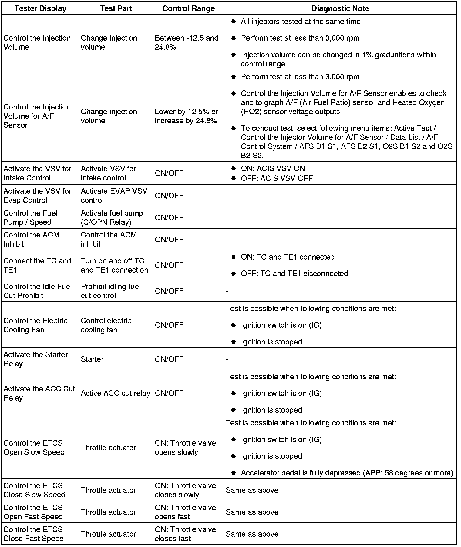 HINT: Performing an Active Test enables components including the relays, VSV (Vacuum Switching Valve) and actuators, to be operated without removing any parts. The Active Test can be performed with Techstream. Performing an Active Test as the first step in troubleshooting is one method of shortening diagnostic time.