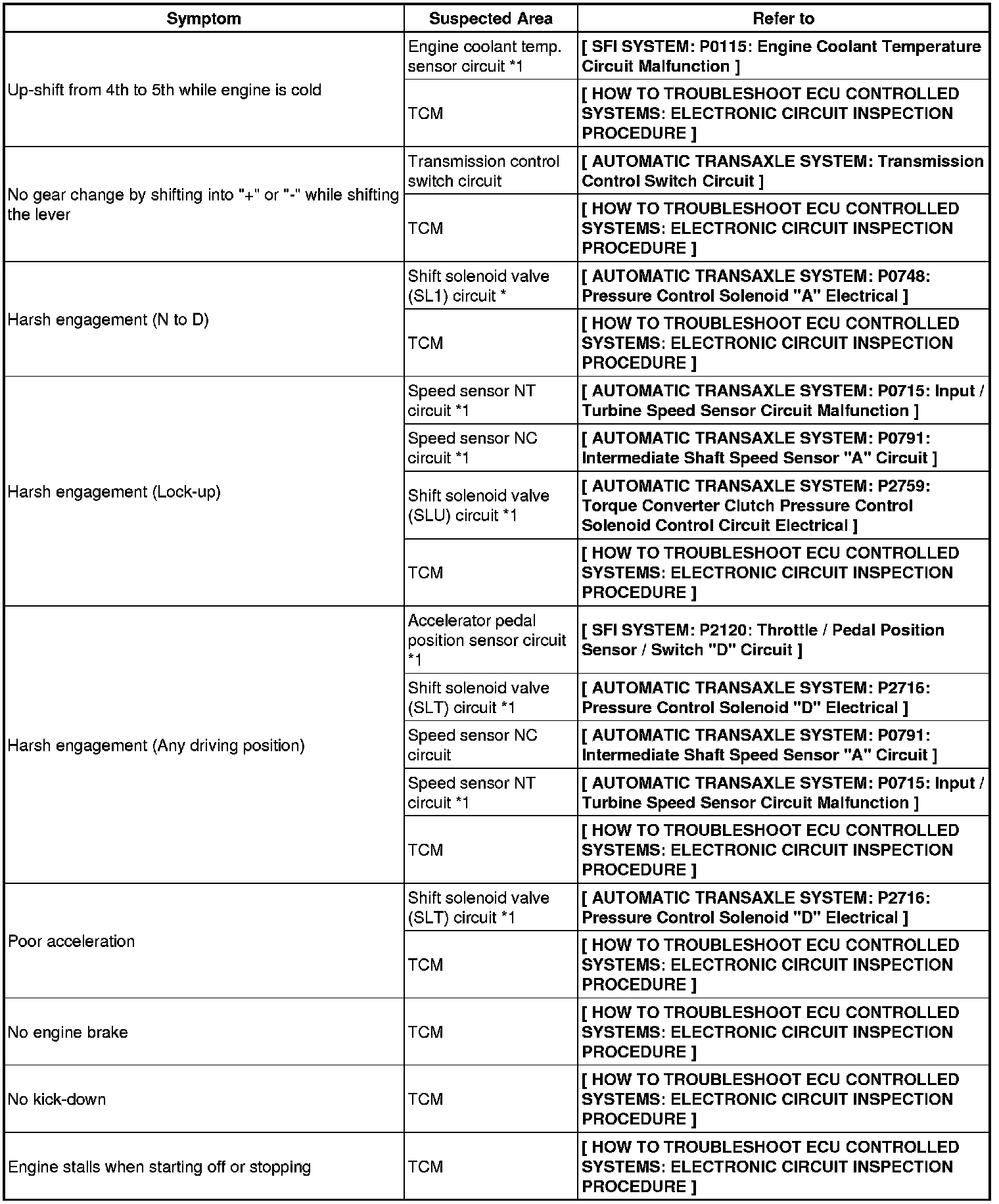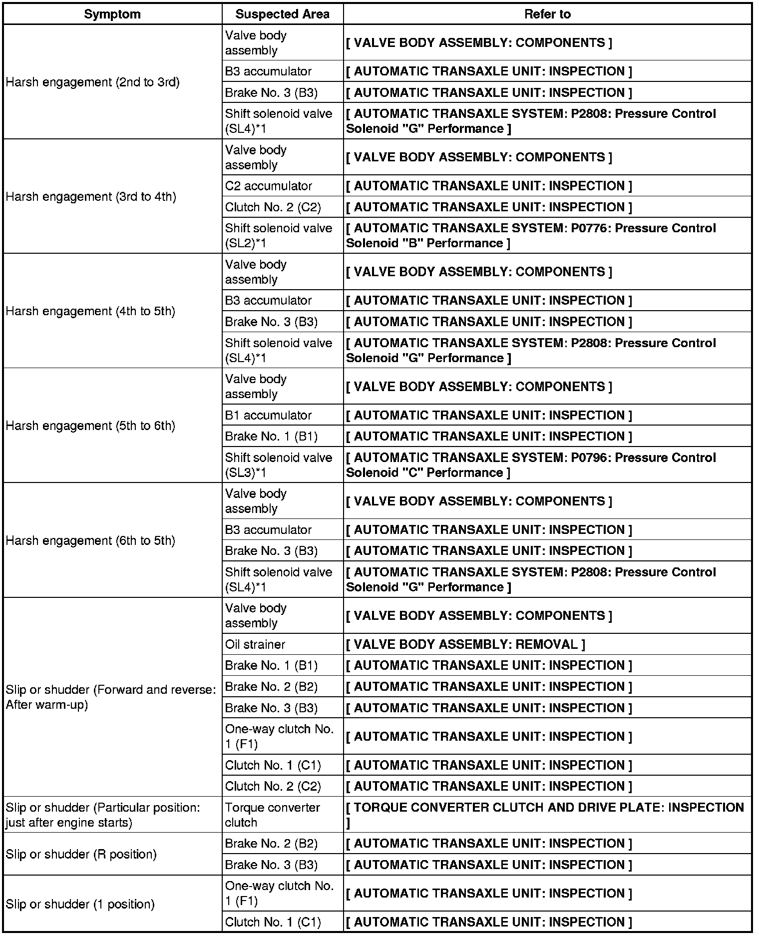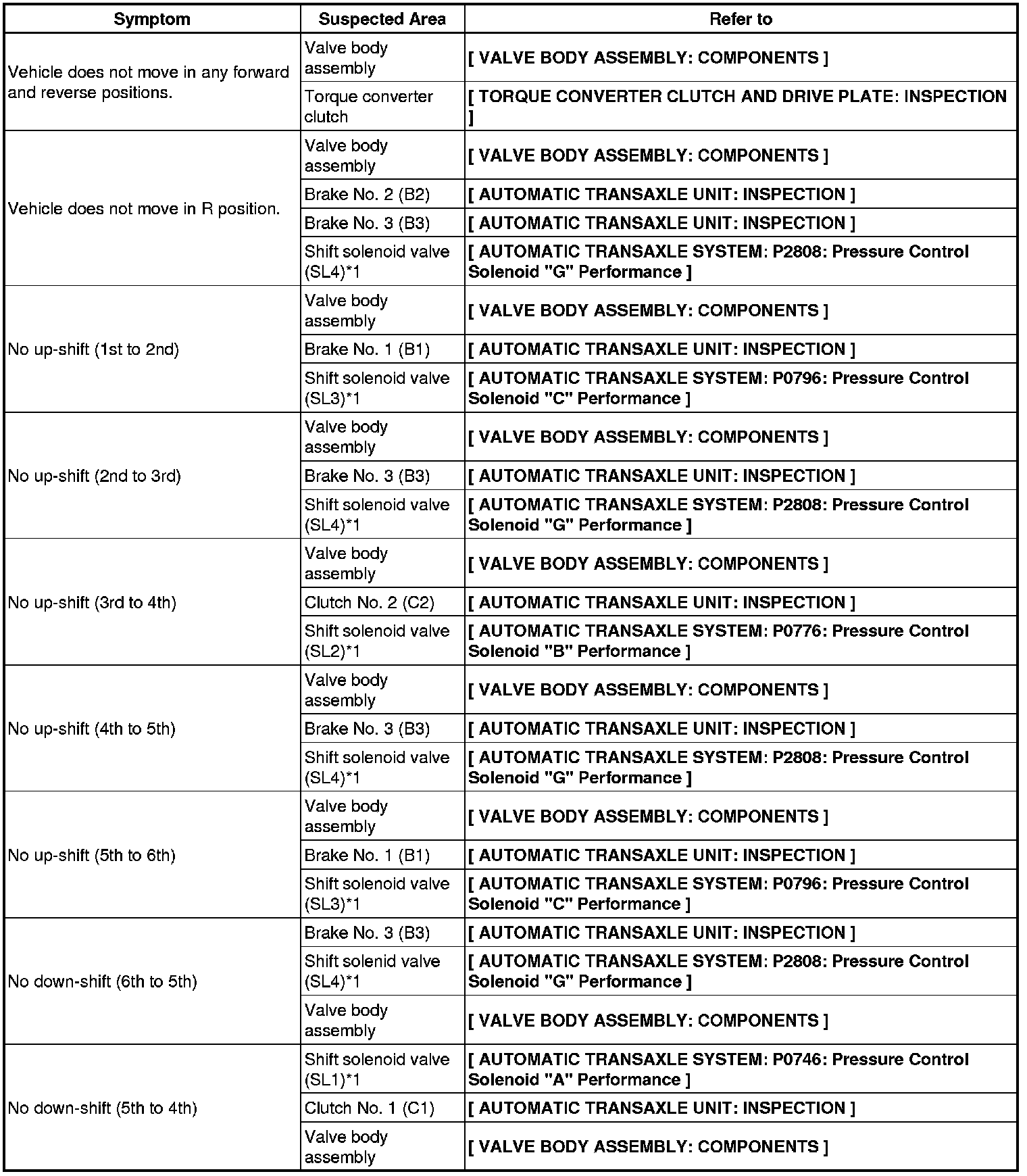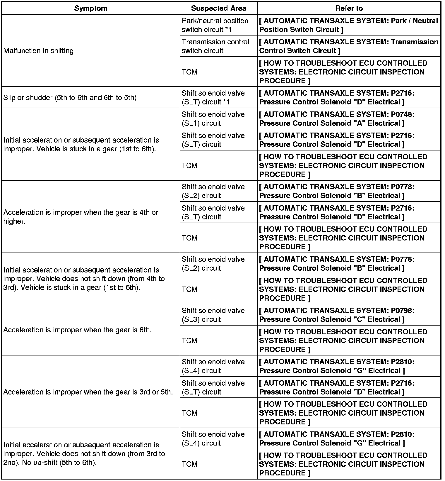 U660E AUTOMATIC TRANSAXLE: AUTOMATIC TRANSAXLE SYSTEM: PROBLEM SYMPTOMS TABLE