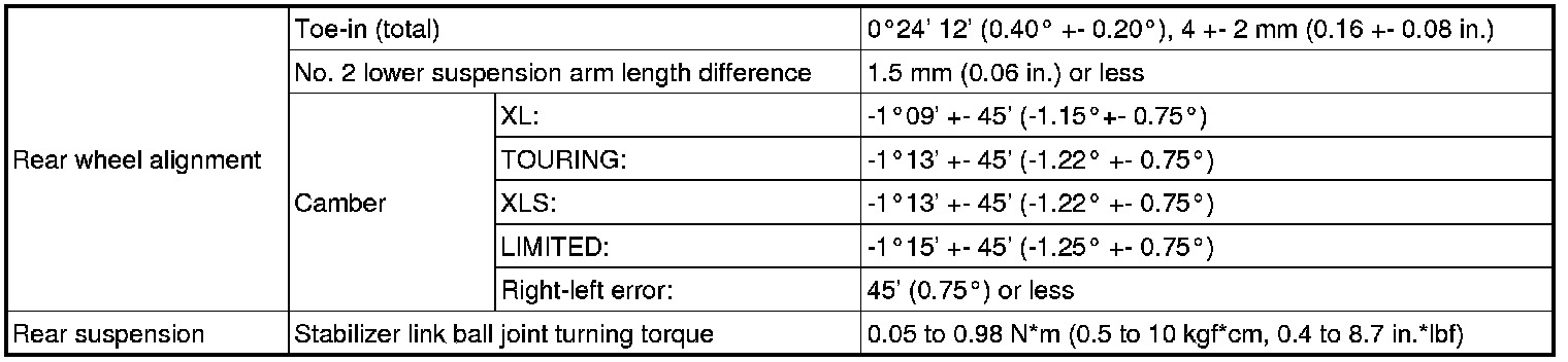 SERVICE SPECIFICATIONS: SUSPENSION: SERVICE DATA