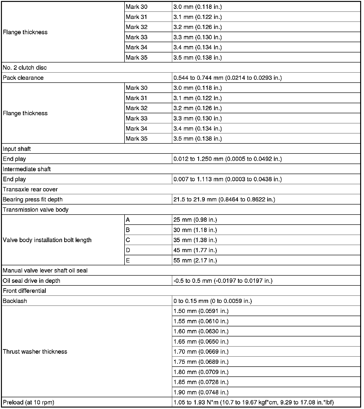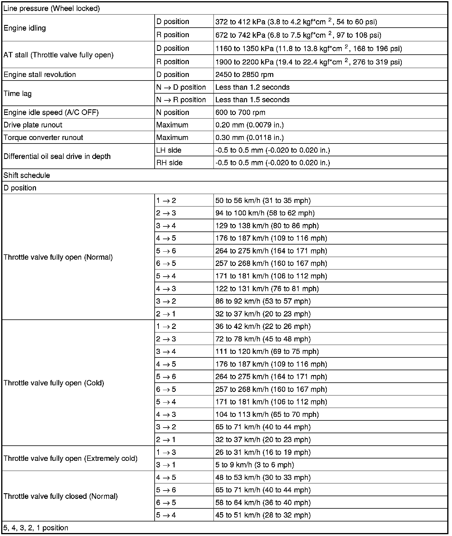 SERVICE SPECIFICATIONS: U660E AUTOMATIC TRANSAXLE: SERVICE DATA