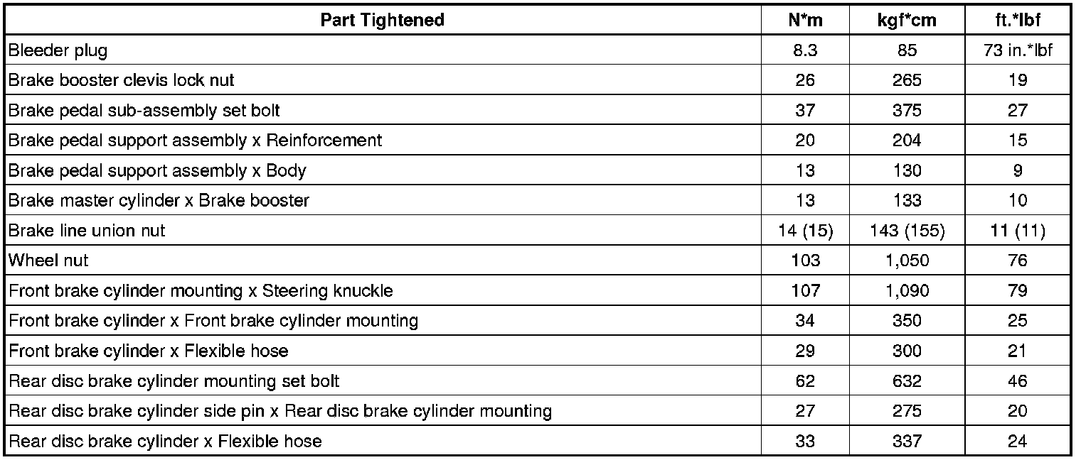 SERVICE SPECIFICATIONS: BRAKE: TORQUE SPECIFICATIONS