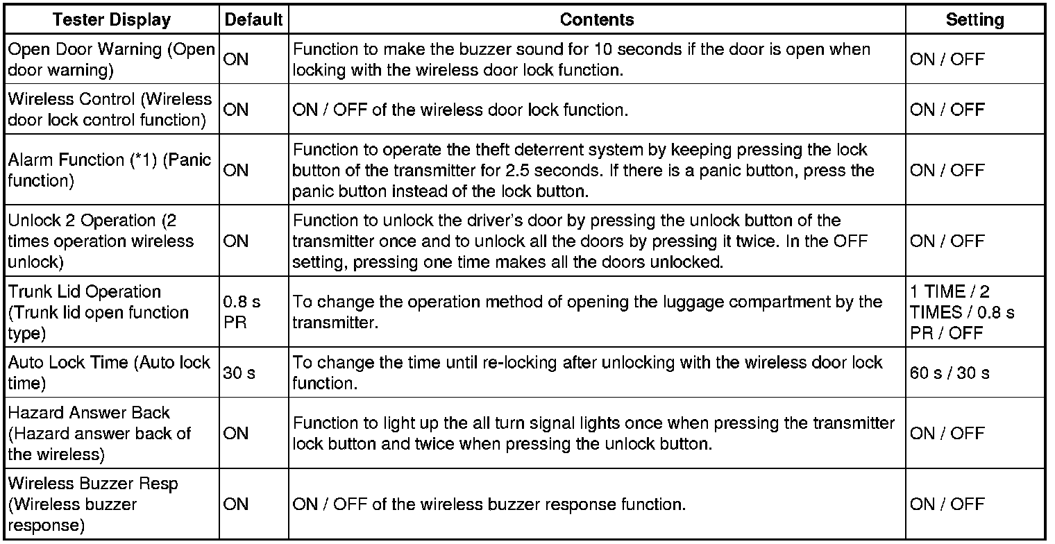 (*1): This function cannot be turned on or off if the security system is turned off.