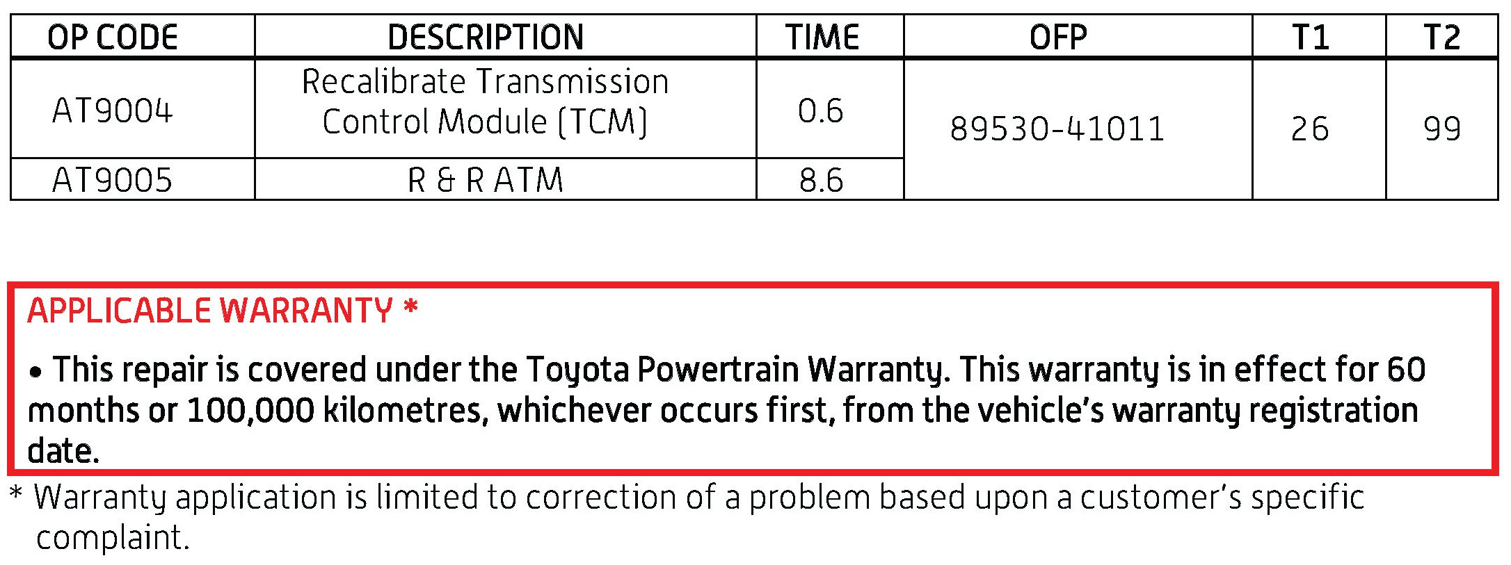Canada - A/T Controls - TCM Update For Shift Improvements