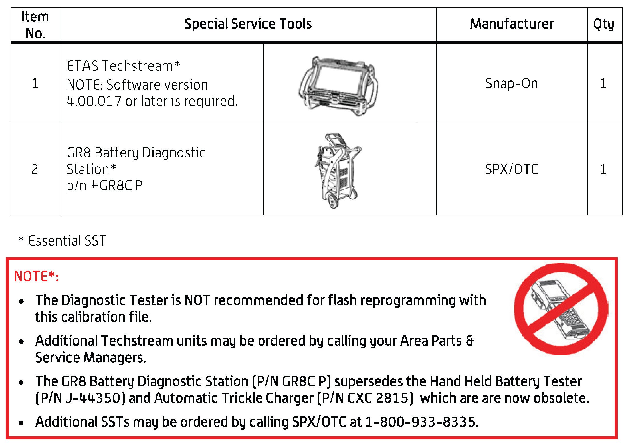 - For details on how to use the GR8 Battery Diagnostic Station, refer to the GR8 Battery Diagnostic Station Instruction Manual located on ETAS/TIS library > Tools > tools and equipment > GR8 Battery Diagnostic Station Instruction Manual.