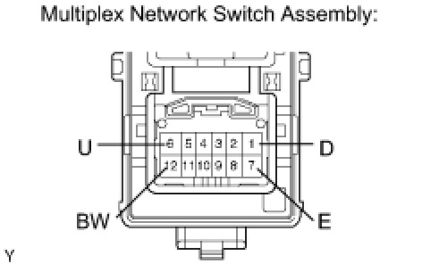 If the result is not as specified, replace the multiplex network switch assembly.
