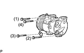 NOTE: Tighten the bolts in the order shown in the illustration to install the compressor and pulley.