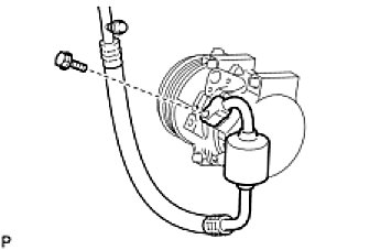 (d) Install the discharge hose sub-assembly onto the compressor and magnetic clutch with the bolt.