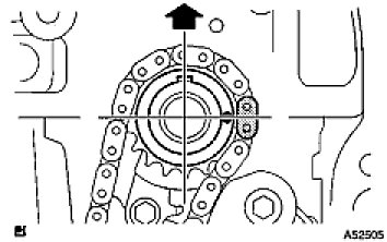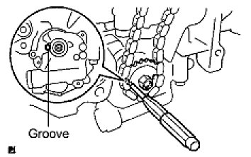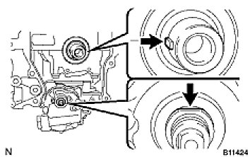 - Align the adjusting hole of the oil pump drive shaft sprocket with the groove of the oil pump.