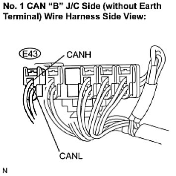 (a) Reconnect the CAN main bus wire connector (E43) to the No. 1 CAN J/C "B" side (without earth terminal).