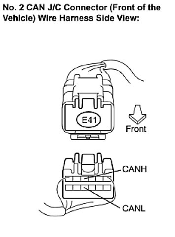 (b) Disconnect the CAN main bus wire connector (E41) from the No. 2 CAN J/C (front of the vehicle).