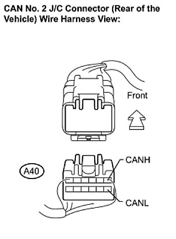 (b) Disconnect the CAN main bus wire connector (A40) from the No. 2 CAN J/C (rear of the vehicle).