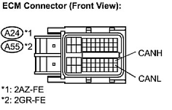 There may be an open circuit in the CAN main bus wire and/or the DLC3 branch wire when the resistance between terminals 6 (CANH) and 14 (CANL) of the DLC3 is 69 Ohms or more.