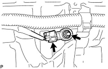 (d) Remove the union to check valve hose from the vacuum hose clamp.
