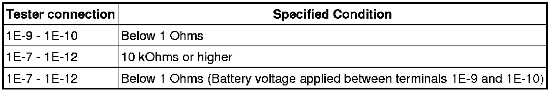 Using an ohmmeter, measure the resistance according to the value(s) in the table below.