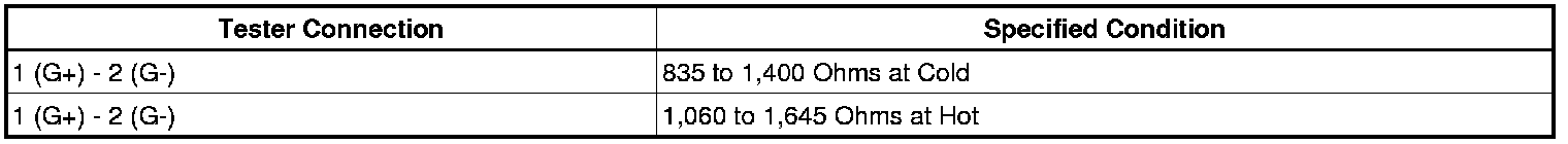 If the result is not as specified, replace the camshaft position sensor.