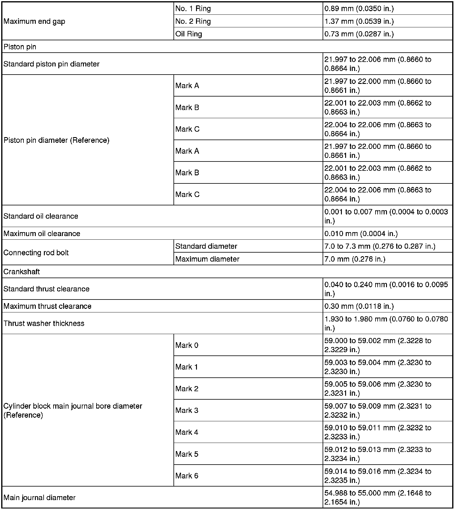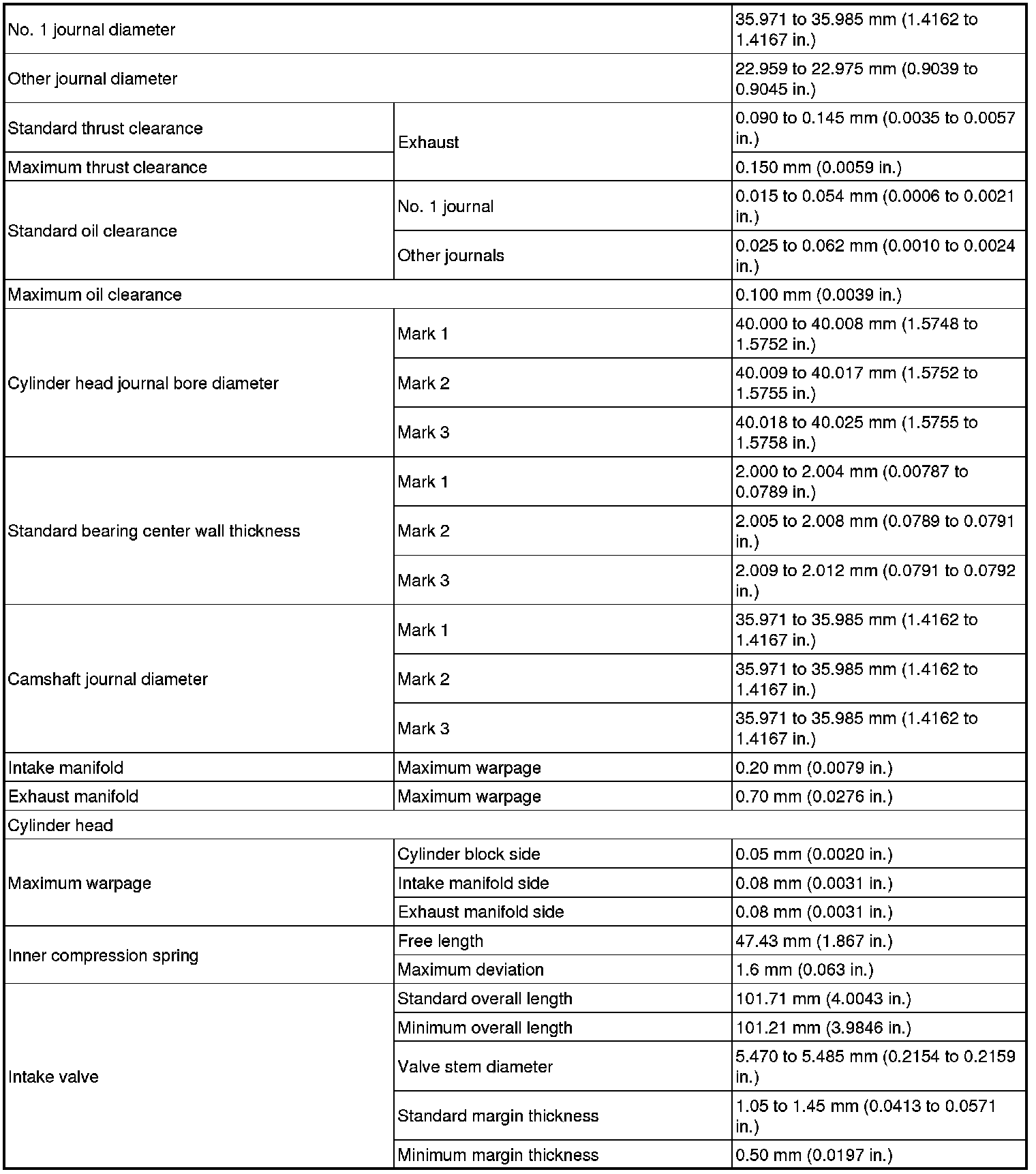 SERVICE SPECIFICATIONS: 2AZ-FE ENGINE MECHANICAL: