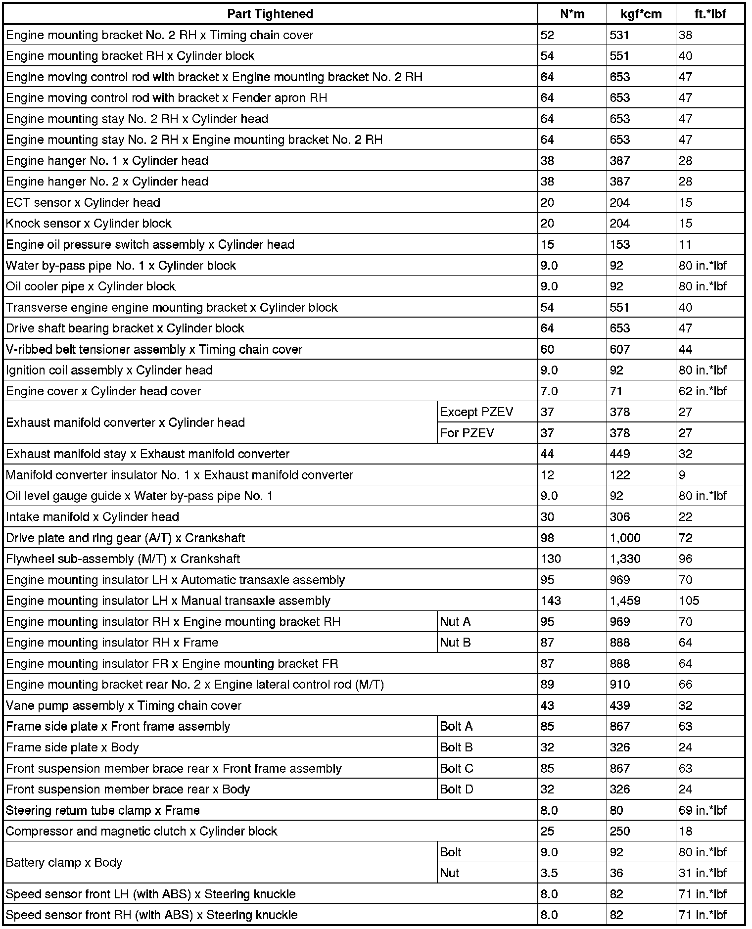 SERVICE SPECIFICATIONS: 2AZ-FE ENGINE MECHANICAL: