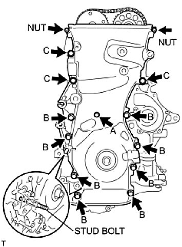 TIMING CHAIN COVER SUB-ASSEMBLY (Installation)Install the timing chain cover with the 12 bolts and 2 nuts.
